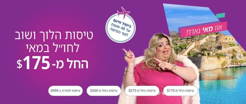 לטיסות הזולות ביותר של ארקיע בחודש מאי: